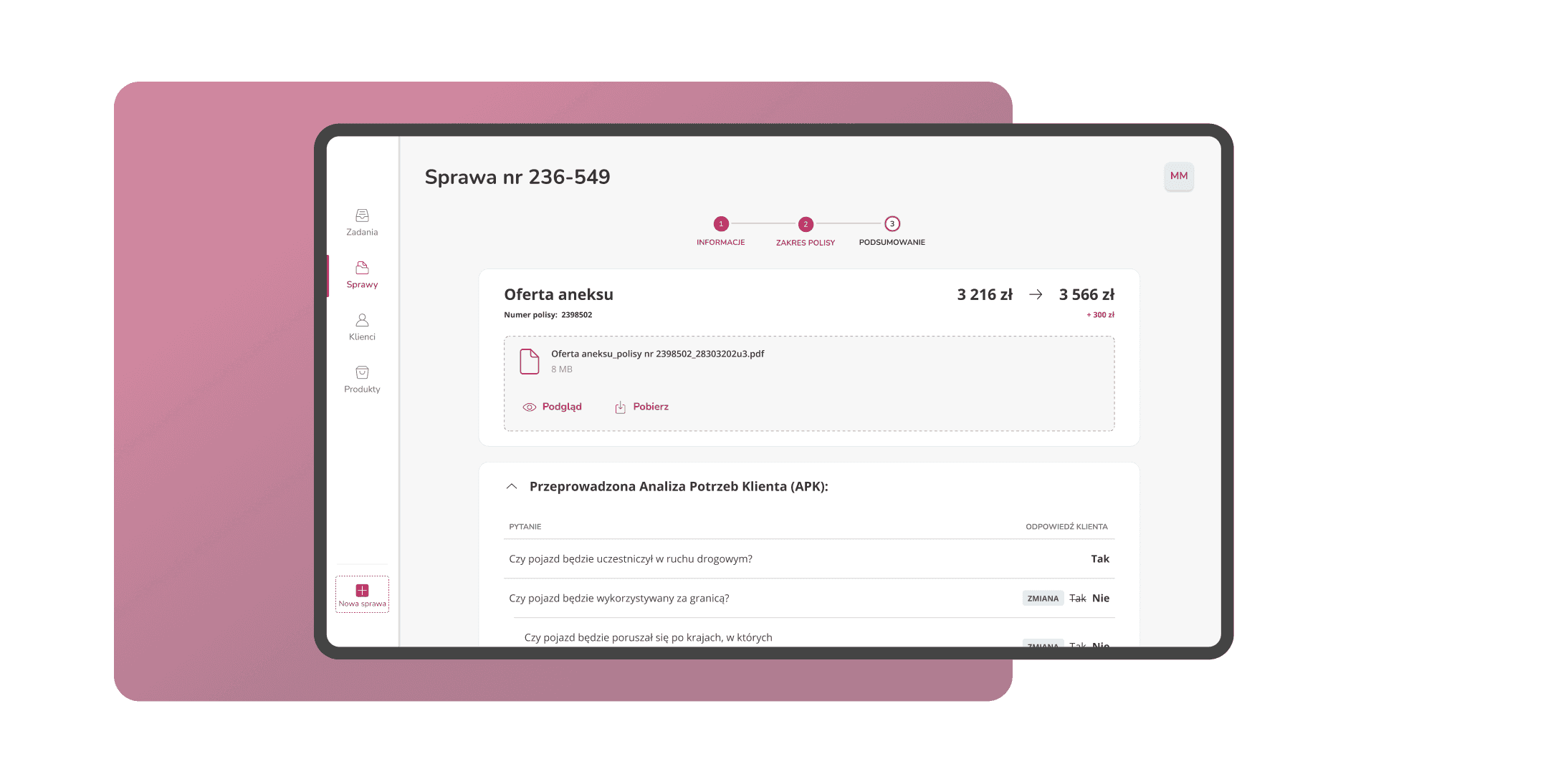 An internal system for a financial-sector client with many stakeholders, from IT teams to banking specialists. Project focused on insurance backend system.